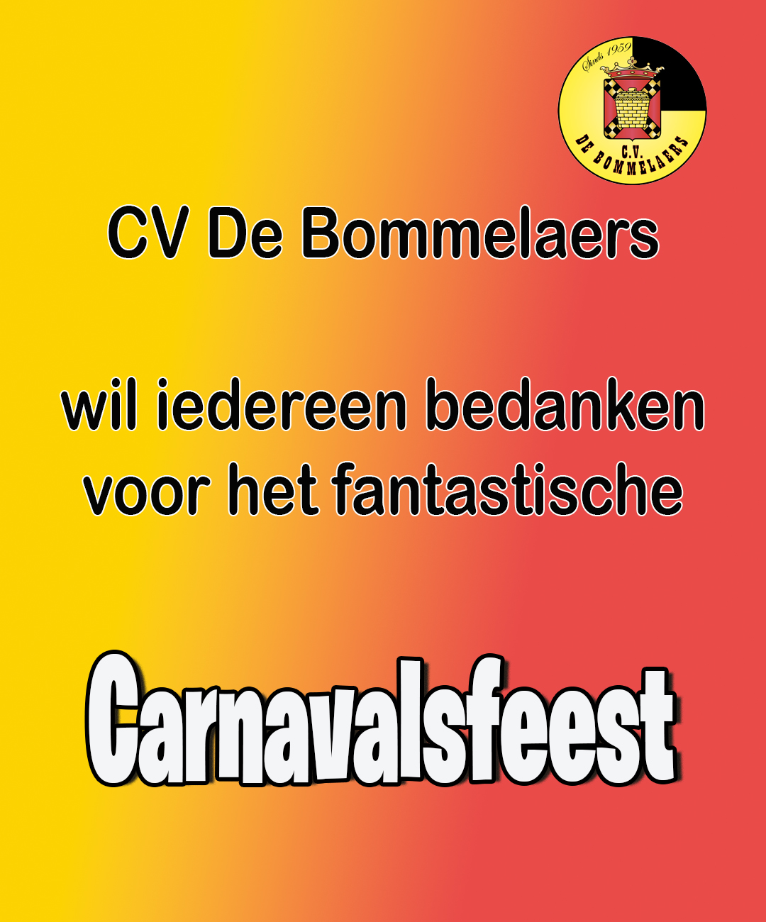 Kent u mensen die vroeger actief waren bij de Maasbommelse carnaval? Meld dit bij een van de leden of neem contact met ons op via cvdebommelaers@gmail.com. En laat vooral deze personen weten dat wij ze graag welkom heten tijdens ons jubileumweekend op 'Van Keinds af oan', de Bommeldurpse familiedag.